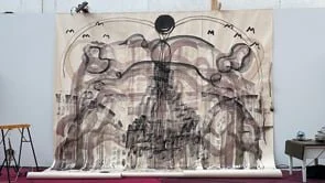 Utmaningen för det illustrativa har varit att lyckas arbeta med en stor yta inom en viss tidsram och samtidigt vara ett med musiken genom att spela bläck tillsammans med de andra ensemblemedlemmarna. Spelningarna har föregåtts av några få repetitioner där en fragmentarisk skiss arbetats fram, ett slags partitur för bläcket. Resultatet blir ett möte mellan genrer där något helt nytt uppstår vid varje enskilt tillfälle. En process som bygger på en stor dos tillit till varandra, vi och publiken skapar en unik improvisation som varken kan eller vill upprepas på exakt samma vis nästa gång.
